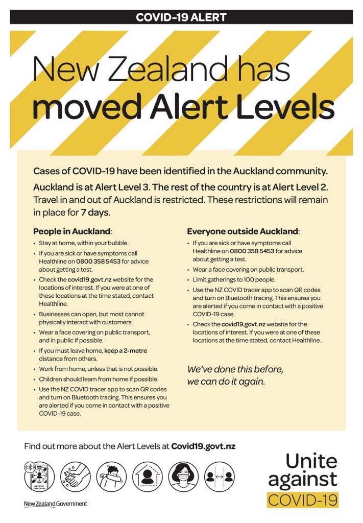 Level 3 Auckland and Level 2 Outside of Auckland
